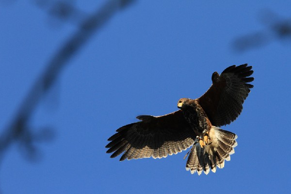 We had great fun flying four of our Harris hawks together recently! Thank you to Claudia Somes for this photo that she managed to take as she and her friends were flying the hawks.