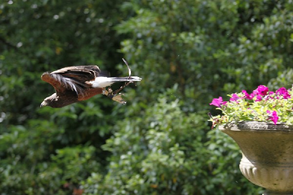 Tommy has been really enjoying flying wonderful Wookie recently. He has trained her to fly through one of the fountains in the gardens of Ashford Castle that surround the Falconry School. Here she is in slow motion, you can really see the many adjustments that she has to make with her tail in order to do it. She is such a skilful flier.