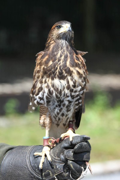 We are really enjoying training our 4 baby hawks (Chestnut, Acorn, Hazelnut & Walnut). Their training is going very well despite little Acorn thinking that Mel's head makes an ideal perch!