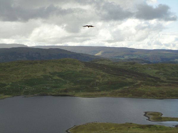 We all had great fun recently when we took the four babies up to the top of nearby Mount Gable overlooking beautiful Lough Cuillin for some serious flying practise. They quickly learnt how to use the wind and the updraughts and were soaring high above us - we were really impressed with their flying skills at only 12 weeks of age. They were spectacular.