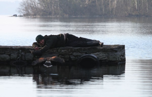 Maya & Samhradh flying across the lake in slow motion