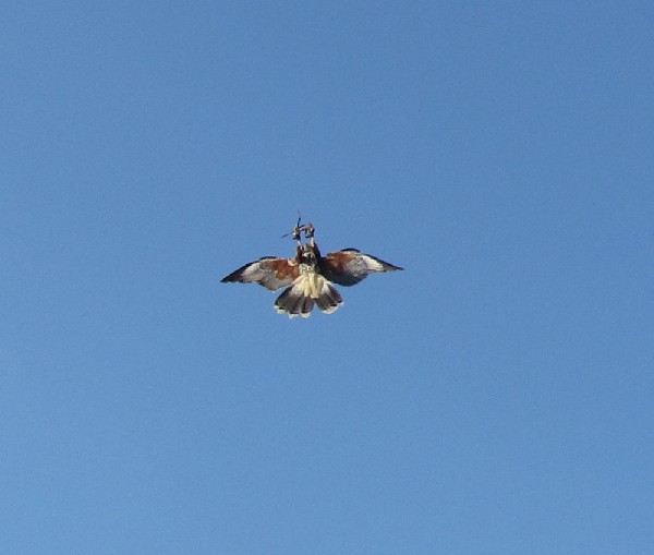 Reg, our 29 year old Ferruginous hawk swooping down to copulate with James!