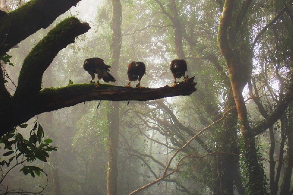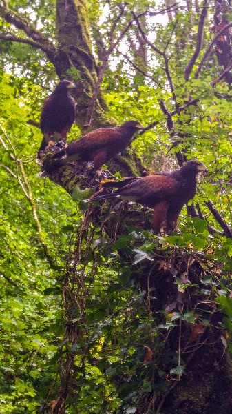 Thank you to Misty Sheriff for sending some of the best photos we have ever seen from her recent Hawk Walk with us. The photo opposite shows our three youngest male Harris hawks, in the mist!!!!