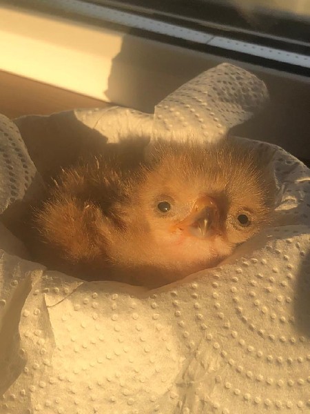 Baby hawk named Hazelnut, just after hatching!