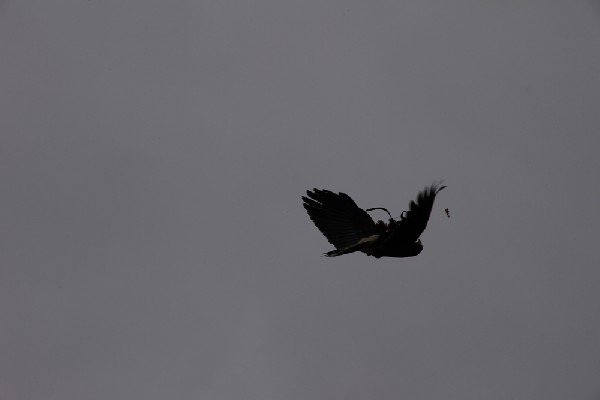 Young Acorn batlling to land back on the glove in high wind