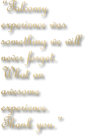 Thank you very much to Troy & Veronica Forrestal, Adam Hynes and Taylor Chambers for sending us this months photos of their Hawk Walks with us. Their photos can be seen in:- "January Guest Gallery' on the Gallery page.