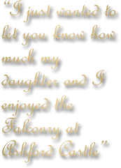A Gift Voucher for a Private Hawk Walk makes a highly unusual Birthday or Xmas present.
